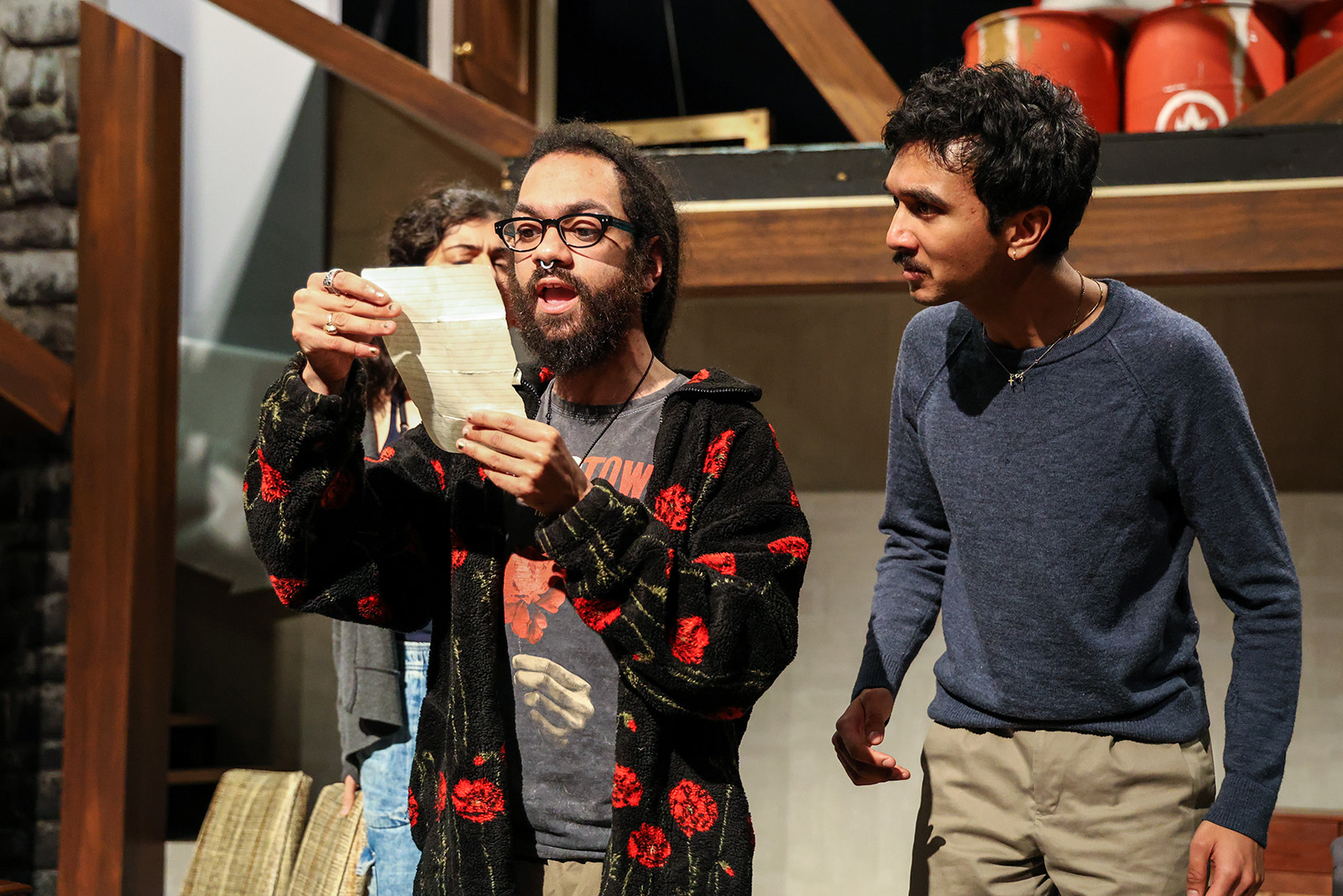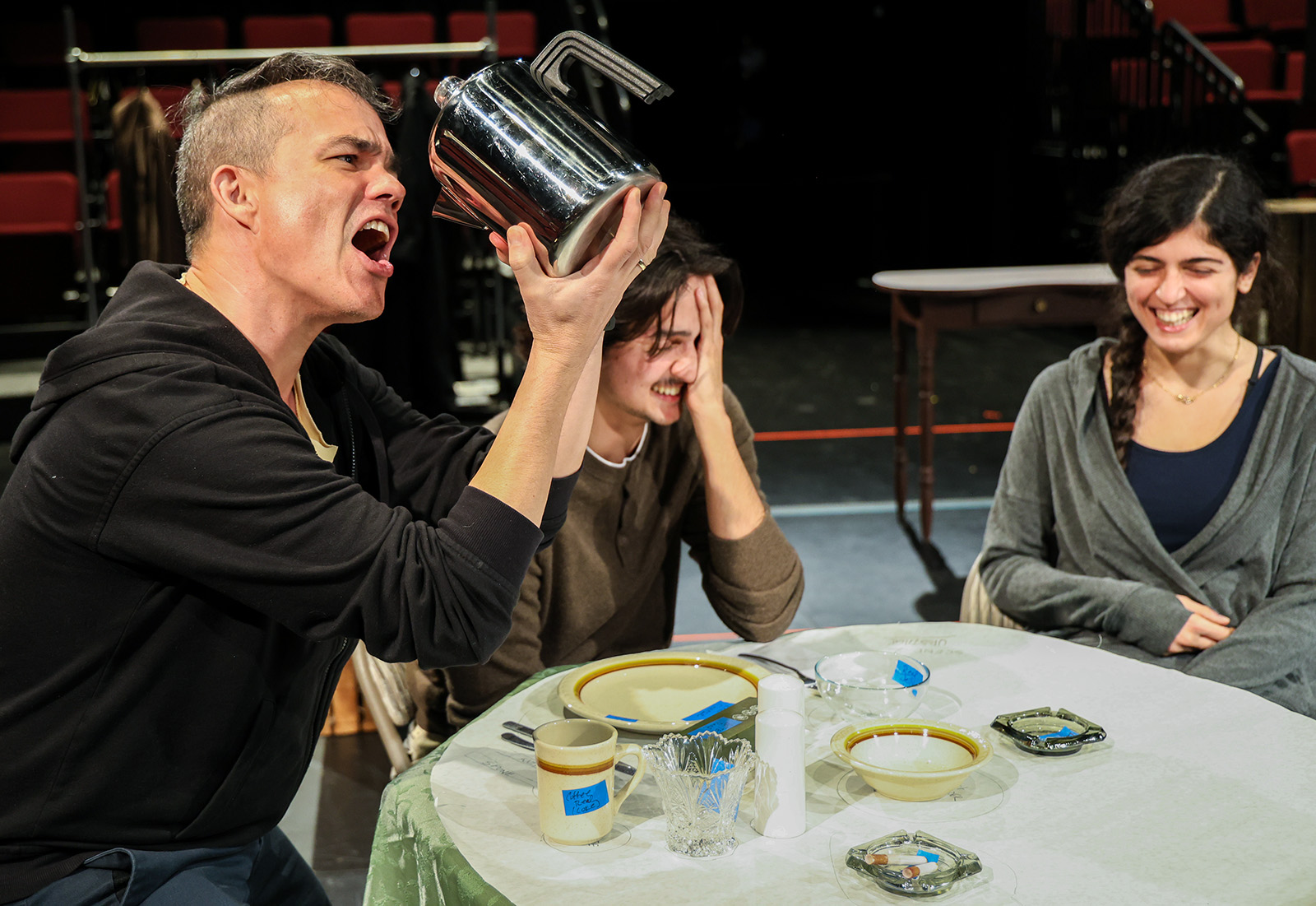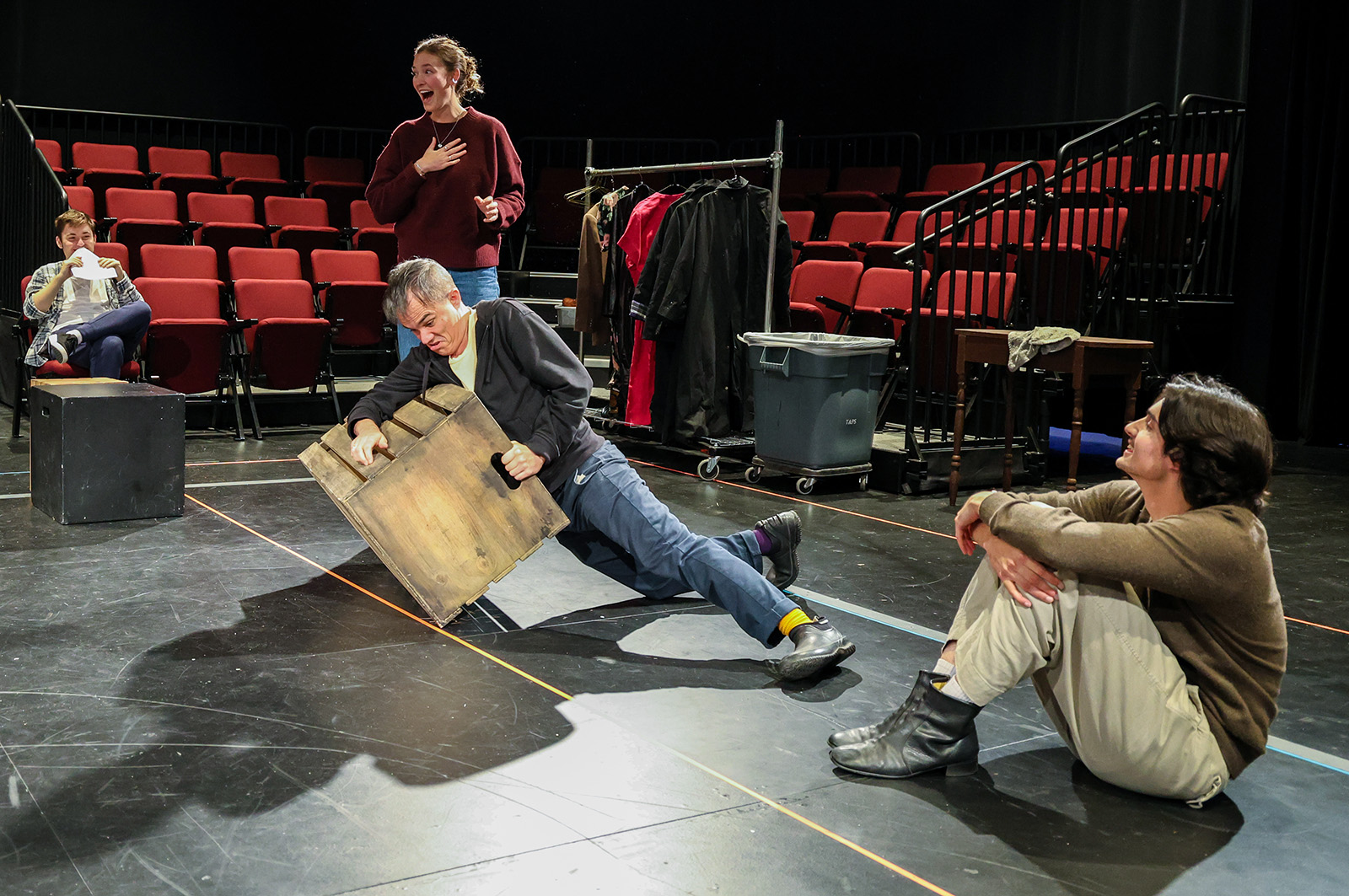 Stylistically, the play comes out of Epic Theatre and the work of Bertolt Brecht (and of course, the choruses of Ancient Greece). We play with some of that legacy—but I also hear in it echoes of Vaudeville (and thereby Commedia dell’Arte). In this production, we used these forms as touchstones to help us dig out the comedy and the characters.