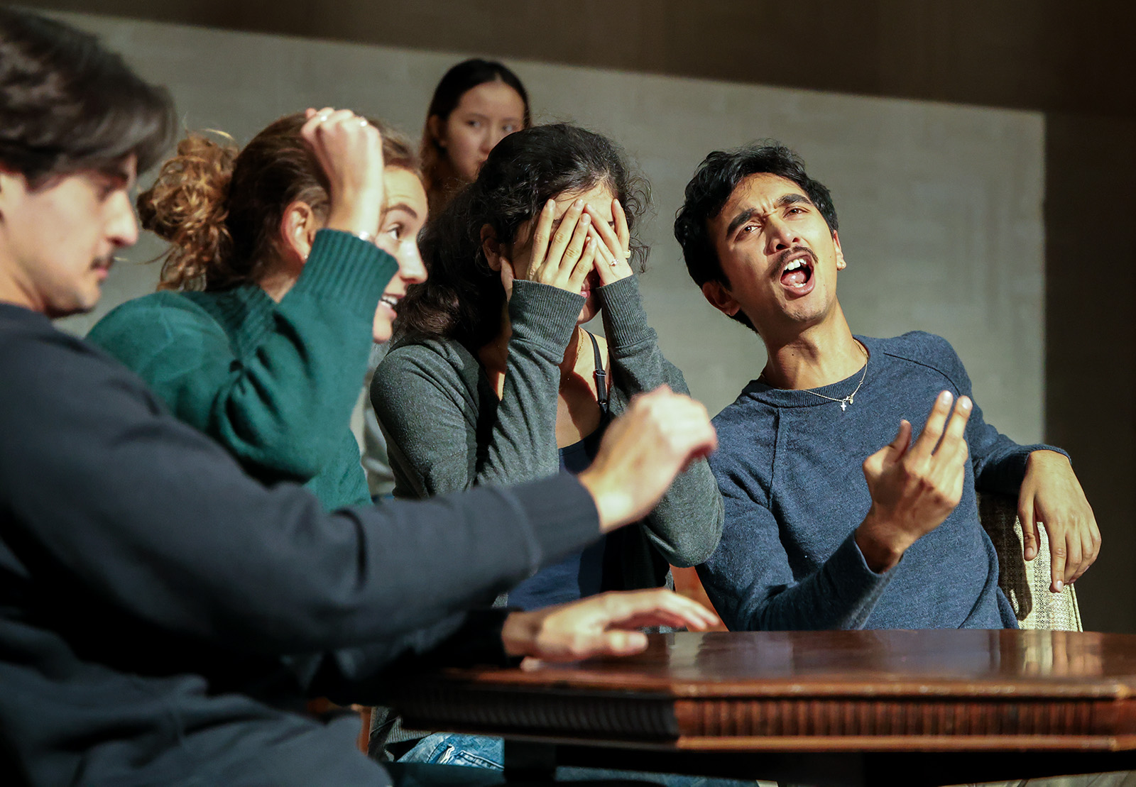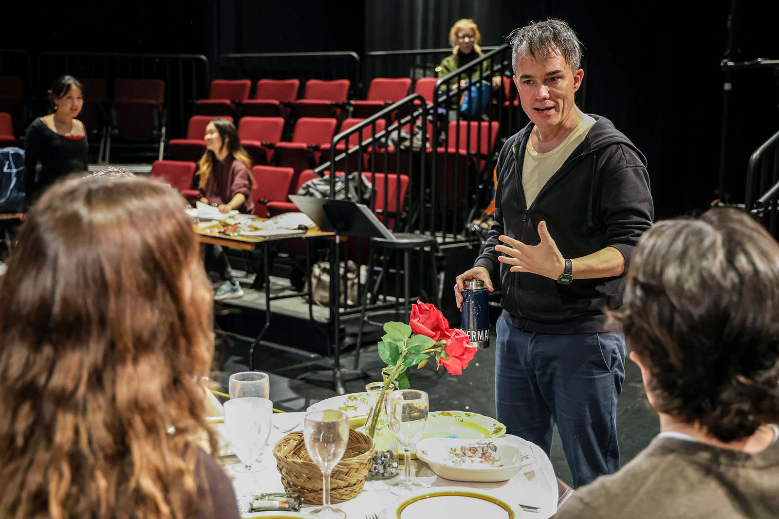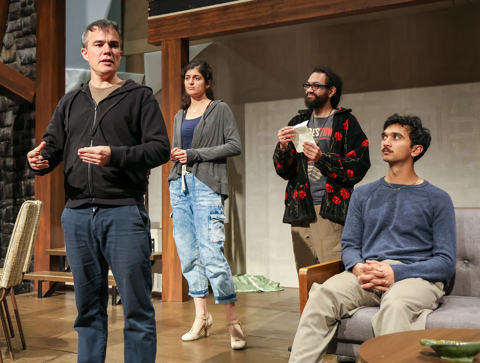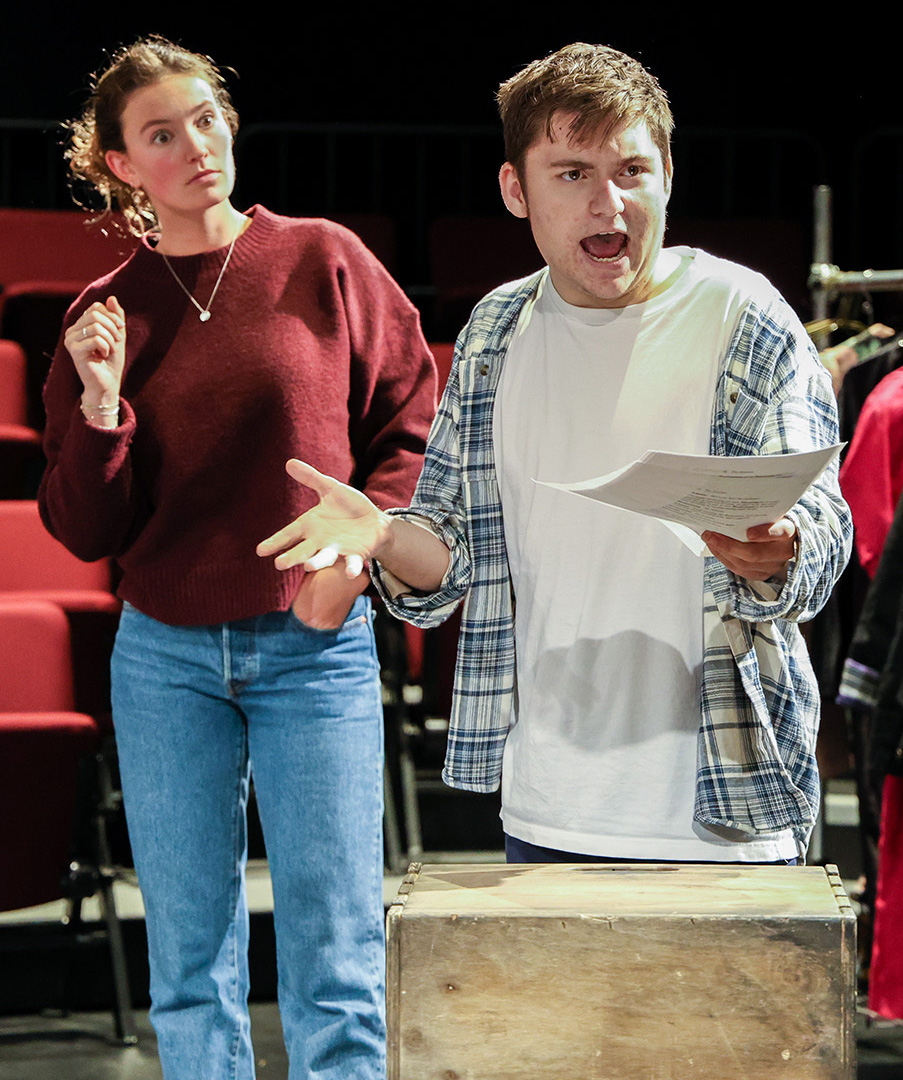 Stylistically, the play comes out of Epic Theatre and the work of Bertolt Brecht (and of course, the choruses of Ancient Greece). We play with some of that legacy—but I also hear in it echoes of Vaudeville (and thereby Commedia dell’Arte). In this production, we used these forms as touchstones to help us dig out the comedy and the characters.